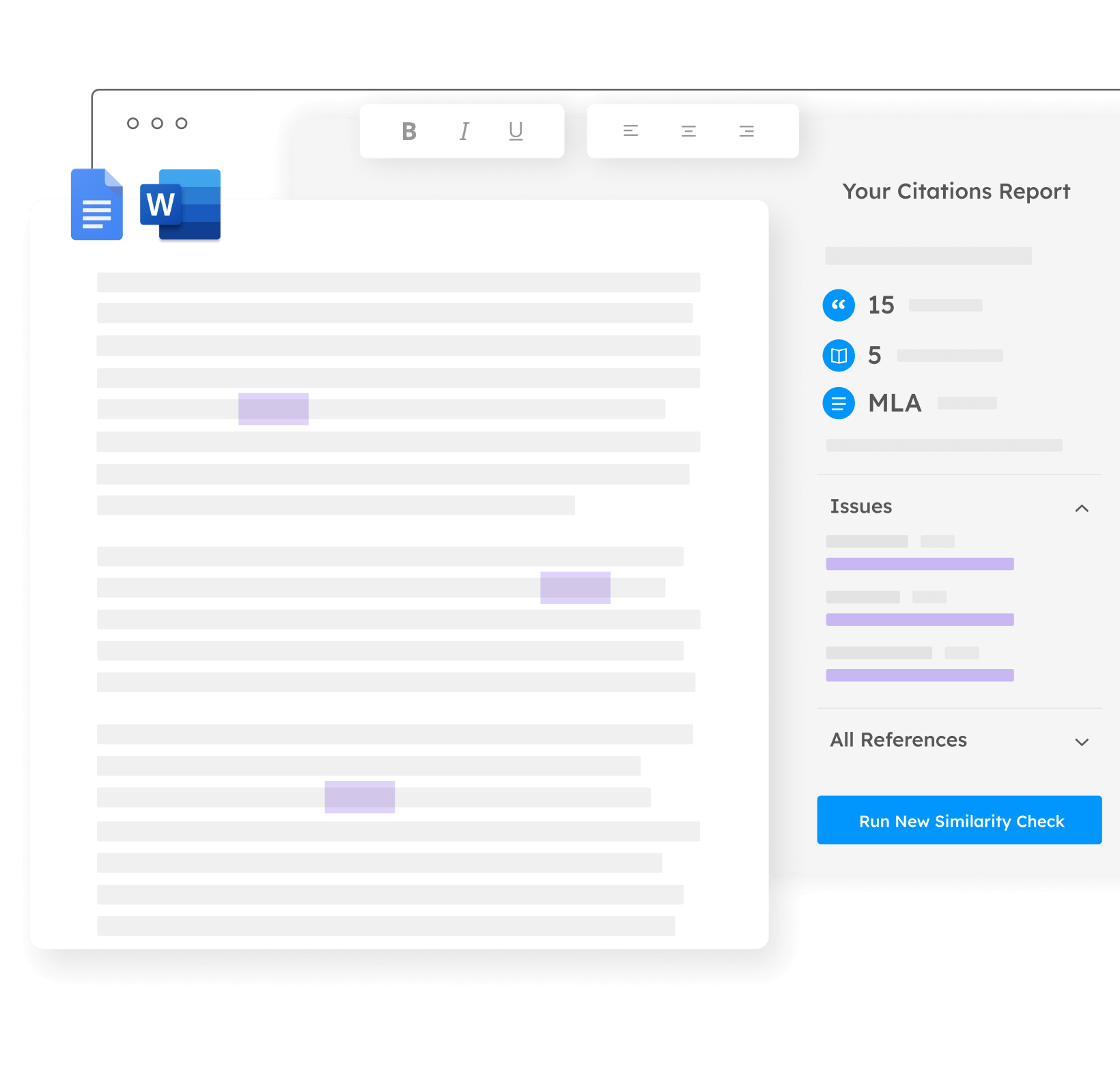 Grâce à une technologie d'apprentissage automatique de pointe, Draft Coach aide les étudiants à identifier toutes les références et citations manquantes.