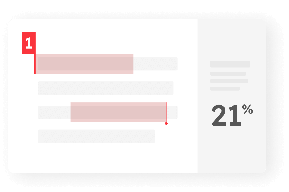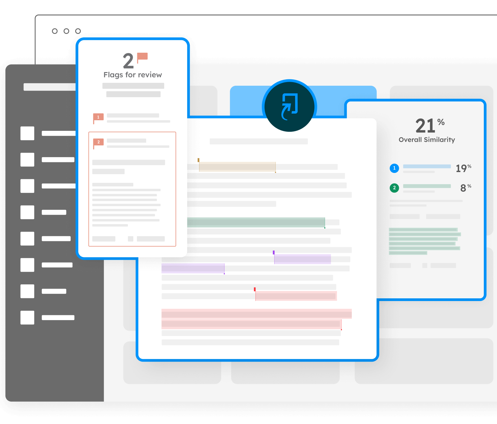 Affichez le score de similarité d'une évaluation, consultez les résultats classifiés par couleur et présentés en parallèle avec les sources. Excluez toutes les correspondances inutiles.