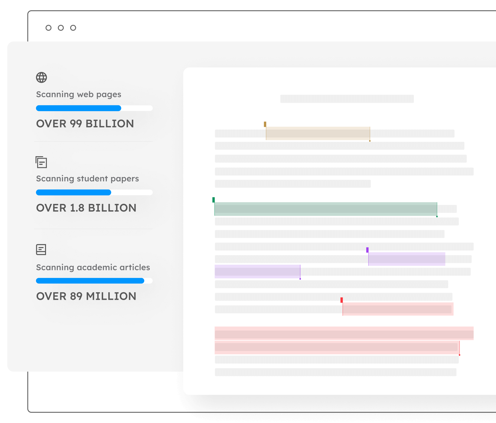 Comparez les travaux de vos étudiants à la meilleure base de données du secteur, qui contient 99,3 milliards de pages web actuelles et archivées, 1,8 milliard de copies d'étudiants et 89,4 millions d'articles universitaires.